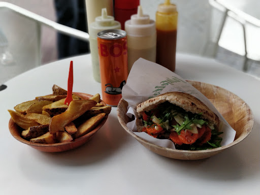 Apparantly I cannot give a NO STAR rating because this sytem requires at least one star to allow a review to be posted so I give one star just to be able to share my opinion. Let's start with the positive...price quality = so so. Now, to the service; the owner needs to decide if he wants McDonalds style or restaurant style. I think queuing to order and then having to queue again to pay is absolutely ridiculous. However, what's worse is being treated like an idiot for not understanding the child like drawing representatations of food that is depicted on the black board menu and the brash manner we encountered from the owner while ordering and, to compound my displeasure, brashness again when paying. Also, and maybe this is a personal querk of mine, the ventilation system in this establishment (albeit modern looking) leaves a lot to be desired...I like to eat Falafel but I certainly don't like my clothes to smell of it for the rest of the evening. Some might say this review may be over the top for a quick food stop outlet but, I think, if you're serious about staying in business (and not just in it for a quick buck) and actually care about what you produce then the service must also be an important factor to take into consideration...I certainly won't...