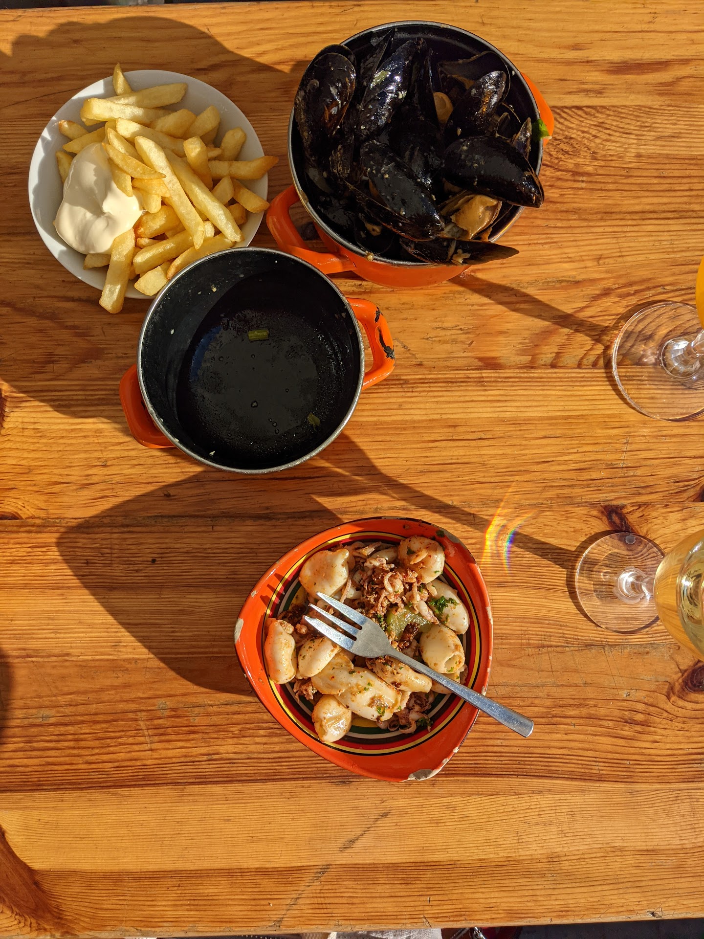 Read moreDo you want cheap? You'll get cheap. I can't quite understand how this "restaurant" is so well rated, I've only had disappointments here. 8 euros for a tiny portion of mussels, 10 euros for literally 5(!) shrimps and 4 euros a glass of white wine of the worst quality you can find. You'll have to eat standing up or in a wobbly bar stool if you can find a table at all, after being mistreated by the cook. When I've left an older lady has asked me if everything was alright, I've replied no and she just ignored me and walked away, without asking anything.