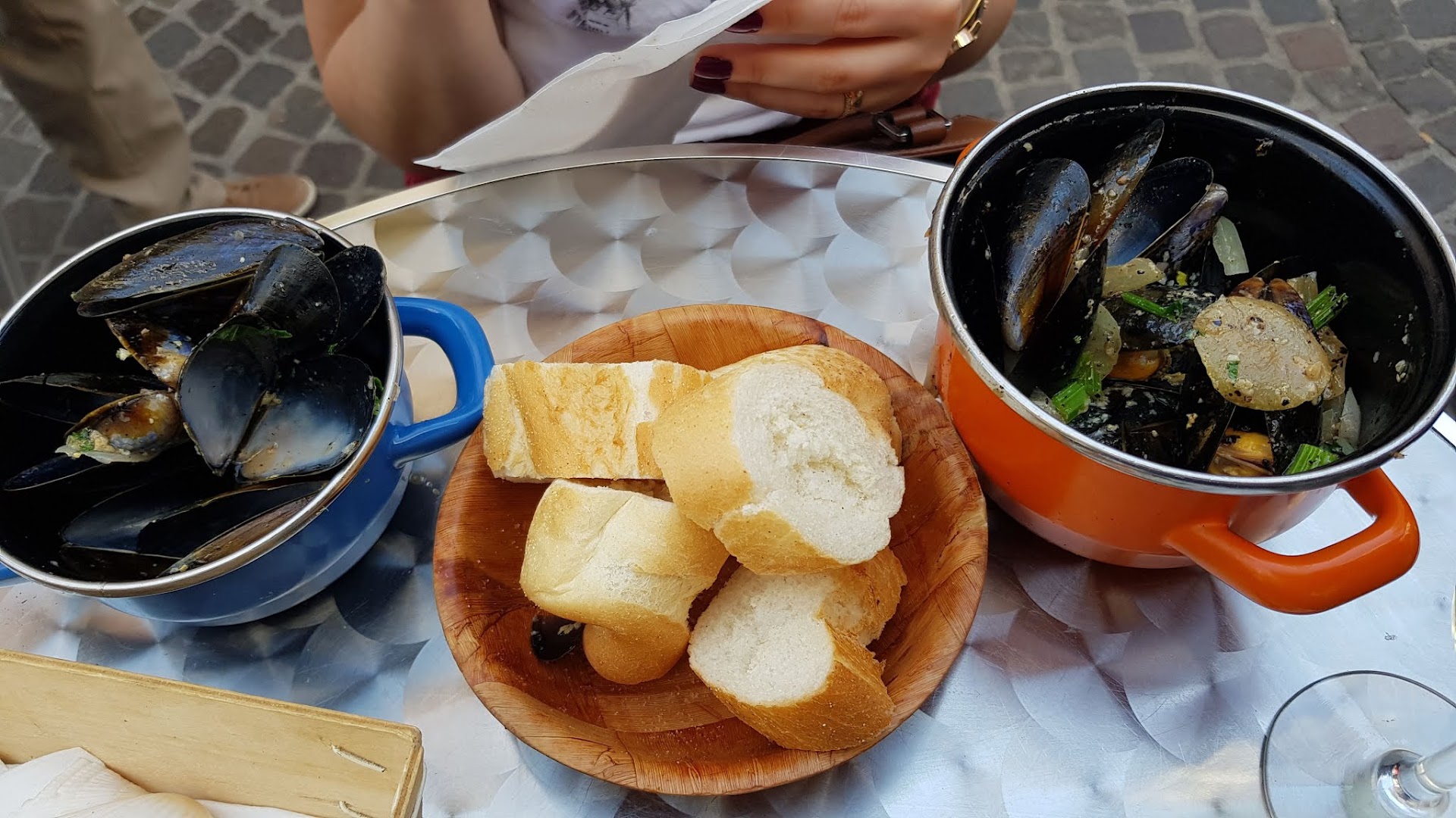 To give you a comparison, t' Putke restaurant which is the second best rated restaurant on Google or TripAdvisor, is better located just around the corner and makes a 4x potion of mussels for 20 euros (fries and bread comes with it - for 2 people), and much better quality wine for same 4 euros. You won't have to fight for a table, will be comfortably sitting down and will be served by a polite waiter that won't disrespect you. I was just greatly disappointed by Fish a'gogo... NOT...