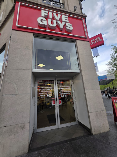 Read moreFive Guys clearly missed its introduction on the Belgian hamburger restaurant market. The Antwerp restaurant is far from cozy, the menu is shown on a very small display and there is not a single indication about the size of the different fries' or burgers' portions and it is not clear how to get your order. When your dish is ready, an employee will yell a number in English or Dutch (often several times the same number before it is heard). It's 2018, maybe invest in a digital display showing order numbers or install self-order kiosks? Prices are ridiculously high but at least you can choose what you want on your small hamburger bun (9,5 euro for one hamburger without fries). I like the mushroom option though. Hamburger and fries are then put in a small bag on top of each other, even if you eat on the spot. The hamburger does not stay together when you eat it but it tastes ok. The fries however are cold, dry, tasteless and full of salt, whether you want salt or not. They are hard to digest and you can't even compare them with real Belgian fries. Fanta does not taste like the original Fanta and the tables and floor are not being cleaned. There should be a full-time table cleaner. I'd like to eat on a clean table. The music was awful but the personnel...