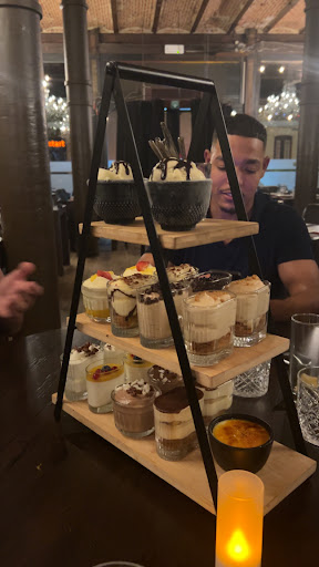 Read moreFogos is een mooi, kwaliteitsvol en uitstekend gelegen Braziliaans restaurant. Men slaagt erin de Braziliaanse "churrasco" (barbecue) met acht vleessoorten en twee vissoorten smaakvol aan de man te brengen, ware het niet dat niet alles even Braziliaans is. Zo zouden de geserveerde merguez en witte pens kunnen worden vervangen door de typisch Braziliaanse linguiça calabresa en linguiça toscana. Tevens zou het buffet kunnen worden uitgebreid met rijst, bonen en farinha. Daartegenover staat een heerlijke kruiding en is (onder meer) de picanha om duimen en vingers af te likken. Voor €33,50, excl. dranken en dessert, eet je "rodízio" (à volonté) de hele avond lang. Andere concepten lijken me te duur. Immers, dessert (€3/st) en drank is inbegrepen, maar dit betreft een halve fles wijn of vier frisdranken/biertjes, water naar believen en een tas koffie of thee. Bediening is formidabel. Stuk voor stuk toffe gasten die geen grapje schuwen. Daarmee is de glimlach verzekerd en heeft het restaurant een team klaar staan dat uw beleving naar een hoger niveau tilt. Zo is Fogos een ervaring, meer dan slechts "de voetjes onder tafel". Omdat het concept Braziliaans geïnspireerd is, maar in zijn totaliteit geoptimaliseerd kan worden, neig ik eerder naar dat sterretje minder. Echter, de vijfde ster gaat rechtstreeks naar het personeel. Overigens, parking Rijnkaai zou in het Antwerpse (de) goedkoop(ste) zijn en ligt op een steenworp van...