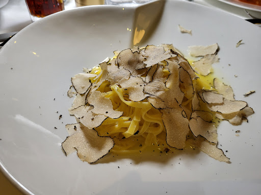 Read moreDe prijzen staan niet gelijk aan de kwaliteit. Wij hadden een Anitpasti Italiano, een zwarte pasta met calamari en erwtjes en een pasta met tartufo. De antpasti was met 6 x 2 plakken vleeswaren, een bruschetta met tomaat en mozzarella met tomaat. Er waren een paar lekkere hammetjes op het bord, maar voor de prijs die je betaald is het beschamend wat je krijgt. Het leek wel vleeswaren uit de supermarkt. De zwarte pasta met calamari en erwtjes was niks bijzonders. Er zaten wat cherrytomaatjes op die eveneens niks speciaals toevoegde aan het eten. Het bord was erg slecht opgemaakt. Een studentenpasta kip pesto smaakt nog beter. De tartufo pasta was erg slecht. De truffel was smaakloos en eveneens deze maaltijd kan ik zelf overtreffen. Wij zaten op het terras met uitzicht op de stad, maar de buxesplanten zijn zo hoog dat.je de stad niet kan zien. Verder was er 1 meneer heel sociaal, maar de andere niet bepaald een toevoeging voor de avond. Met ons kindje van 1 jaar hadden wij het gevoel dat we er snel weg moesten omdat we iedereen tot last waren. Er was geen inclusieve en...