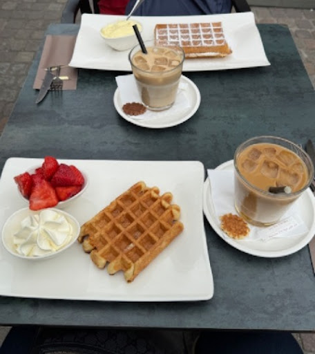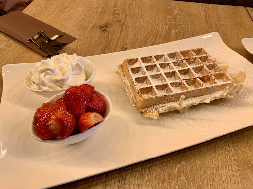 Our local guide recommended this place for the best waffles in the town centre and near our river cruise ship dock. We absolutely loved the offering of waffles and the variety of toppings/combinations at this café. We tried both the Bruxelle and Liege waffles with different toppings (including custard) – everything was delicious! The menu is fun to look through as well. Waffles were fluffy, slightly crispy, fragrant, and they were simply and neatly plated. You won’t leave this place hungry! The waffles went well with an iced latte as we sat outside in the sunny afternoon listening to the church bells ring. Service was quick and efficient. Every server was extremely friendly and helpful. Many tourists come here, so it’s definitely worth a visit! There’s a nice, relaxing atmosphere as we sat in the church square waiting for our order to arrive. Tables are spread apart enough so you don’t hear conversations from...