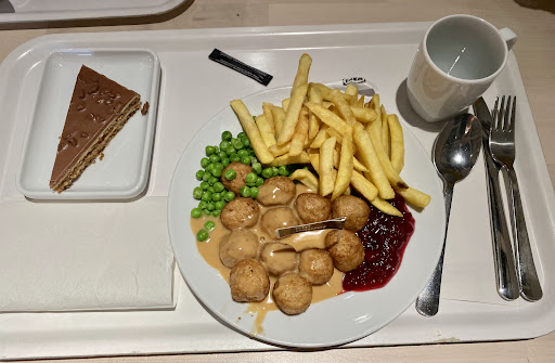 (FR) Chaîne de restauration en libre-service agréable et bon marché, du petit déjeuner au dîner, avec des repas traditionnels suédois et également avec options végétariens et végétaliens. Vous pouvez choisir librement les entrées et les desserts et vous devez commander au comptoir pour le plat principal. Il n’y a pas beaucoup de choix variés mais je recommande les boulettes de viandes traditionnelles avec la sauce aux airelles comme plat principal et la tarte au Daim en dessert qui sont les 2 produits phares de chez IKEA. Vous pouvez avoir des réductions avec la carte Ikea Family pour les boissons et les menus. C’est un peu bondé à certains moments, et ce n’est pas facile de trouver une table et les gens font souvent la queue pour déposer leur plateau...