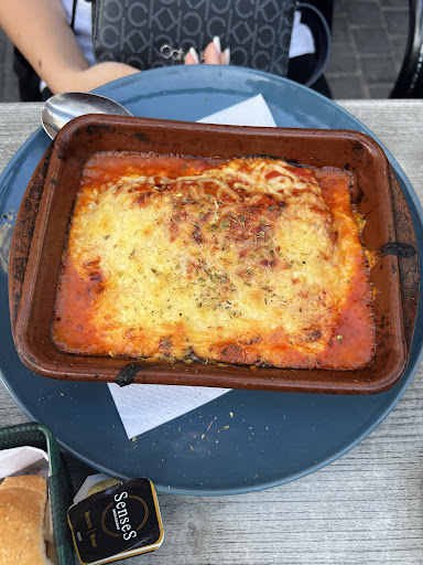 Read moreHad a quick look of the reviews before we stopped here but a lot of other places were packed and it was one of the few restaurants we saw where he could have mussels and i could have Italian! I choose a oven baked vegetarian spaghetti dish which came out piping hot and still bubbling. I note someone else complained about this in a review but for me i'd much rather this than a half cold dish, It shows it hasn't been sitting around. The dish was lovely, no complaints at all from me. The other half had mussels in white wine which came with some fries and he really enjoyed it too. The bread and herb butter that came while we were waiting was fresh and tasty. I've only 2 complaints: