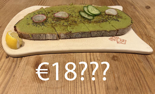 Secondly, it was a piece of toast with a thin transparent smear of avocado and a single slice of smoked salmon. How is that supposed to be an 18-euro dish?