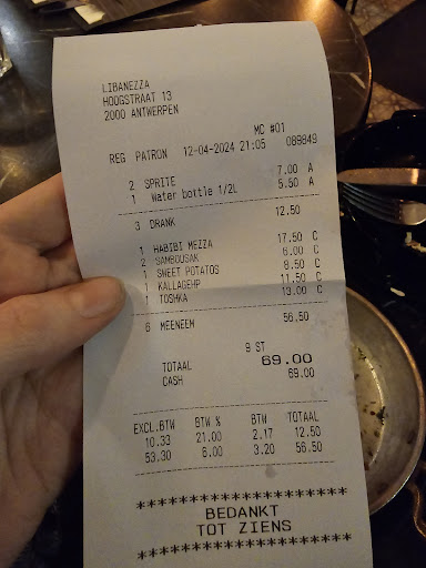 Food was good. Much more moist than traditional but worst service I ever had. Very very poorly managed. At first we wanted to order and my friend wanted a wrap, which is written on the menu "not in weekends". We were like "but its friday bro?" Still, it was a no, alright. Than we ordered the mezze where there's the option shaworma. When you look down on the menu, it is marinated meat or chicken. I till him I want the shaworma chicken. We only received the plain chicken. I order 3 different pochettes and I ask my friend "which one did you see again?" She answers and he goes "ah so that one" bro did you not hear all the rest? The rest we ordered also never came, he just decided for us what we were gonna eat apparently. Next he says "sparkling water" okay? You're telling us we need water? But sure we take water, "no, a big bottle STILL water please".. still comes with sparkling water BRO WHERE ARE YOUR EARS. We also did not receive any libanese bread, I am shocked how bad a waiter can treat you. Never came to us to ask how it was, when we were finished complete silence, not wondering how it was "euh señior? Your food was alright, but your service made it a horrible experience. Might take note of it" Never even made eyecontact and we had to stand up so we could ask the bill. Even to top the horrible evening off, they charged us 21% taxes. Never going back much better and friendlier libanese restaurant...