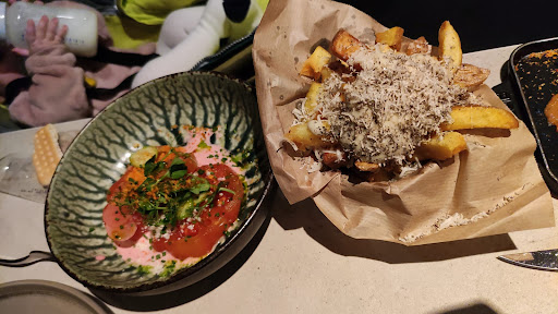 Read moreThe place has a hell of an entrance. You push open these two wooden doors and you’re greeted by a dim, moody glow that wraps around you like a worn leather jacket. Large cuts of meat are presented like it's a piece of art, which immediately sets the tone of 'taking meat serious'. It’s got that urban, industrial thing going—unfinished walls, raw concrete, but in a way that feels deliberate, not half-assed. A DJ spins somewhere in the background, and damn, if the bathroom isn’t one of the nicest I’ve seen in a restaurant. Yeah, that’s right—the bathroom.