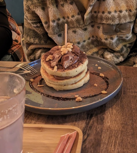The food was delightful other than them being out of the cream cheese. That disappointed me a bit but they did have plenty of other options. I decided to try the smoked salmon toast and chocolate dream pancake, while my friend ate the chicken mushroom toast.