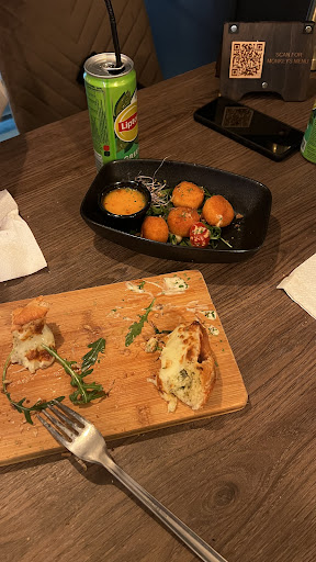 “You pay peanuts, you get Monkeys” was written on the wall. But I had to pay many peanuts and for these expensive prices, I would expect a higher level of quality of food. Although I have to add that I am a picky eater, the food was not at all to my taste. Let’s break it down. I was not too fond of the starters. The calamares were bland and had more crust than calamares itself. The garlic bread was not available (a shame!). From the main dish, I only liked the diced chicken. The sauces were horrible (it did not give the impression it was fresh). The salad was not tasty. The potatoes were barely okay. The vegetable pizza was alright, quite thin though, but with fresh vegetables. The presentation of the food is very nice and the service is very good (very sweet girl).