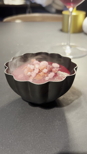 Als ik deze menu wil samenvatten zou ik zeggen lokale producten op Scandinavische stijl gebracht en gekruid met Oosterse invloeden ! Gouden tip: Bij tijdige reservatie kun je de chefs table vragen: met zicht op de keuken én dé eyecatcher van het restaurant, de verlichte bar in Italiaanse...