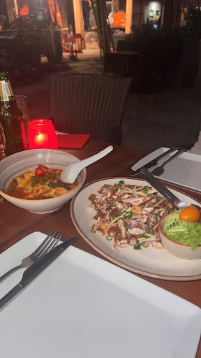 De Thai Mochito zit hier in een bedenkelijk glas, met een te kort rietje, er drijven 2 stukken citroen boven op een extreem zoete, troebele en smakeloze mix van slechte ingrediënten. De prijs van 13 euro is deze cocktail niet waard. De naam cocktail ook niet. In mijn ogen is een cocktail een uitnodigend drankje waar je graag aan wil beginnen, dit allerminst. Mijn tip is om eens goed bij de concurrentie te kijken hoe een cocktail moet worden opgediend.