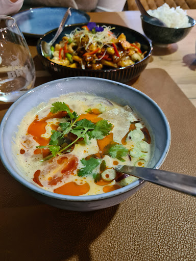 This place is very cosy and welcoming. The food was great, I got the yellow curry (the mildest) with tofu and it was just the right amount of spicy for me. My friend had the green curry (the spiciest) and it was just the right amount of spicy to clear her sinuses. My tofu was also very tasty and not just some flavorless fried lumps begrudgingly thrown in like at so many places. The cocktails were well worth their price and dessert was absolutely delicious as well. We had a great evening here and I look forward...