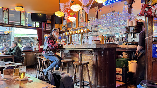An authentic ‘bruin café) - meaning an authentic folksy pub with furniture in dark brown wood, as they used to be in times past. The interior, with its art nouveau decorated windows, is by itself a photographer’s delight. But it has so much more to offer, like perfectly served beers, or just a place to sit for an hour and read a book, or enjoy the soft...