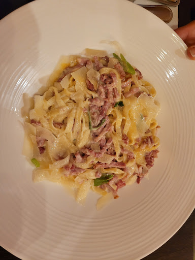 Read moreWe found this place by chance looking for somewhere close to the central and without reservation. The owner was so helpful and friendly, he arranged us a table just before the rush hour. The place is cosy and designed in very replacement efficient way. We had lamskroon and pasta carbonara. The lamskroon was cooked correctly and the mustard sauce with it was just incredible. Carbonara with yolk and little onion touch was also very delicious and fresh. The house wine, both red and white had enough quality to enjoy our dishes. With a reservation, we could have tried some starters because they seemed very delicious. The only negative part was men's restroom as it is only for one person and I failed to use it twice because it was...