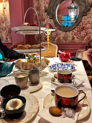 From the moment we arrived, it felt as if we had stepped straight into a scene from The Secret Garden. The path to the tea room was enchanting, and upon entering, we were greeted by an exquisite outdoor setting that felt straight out of a storybook. Inside, the decor was pure vintage elegance, with intricate walls and thoughtful touches that created a beautifully classic ambiance.