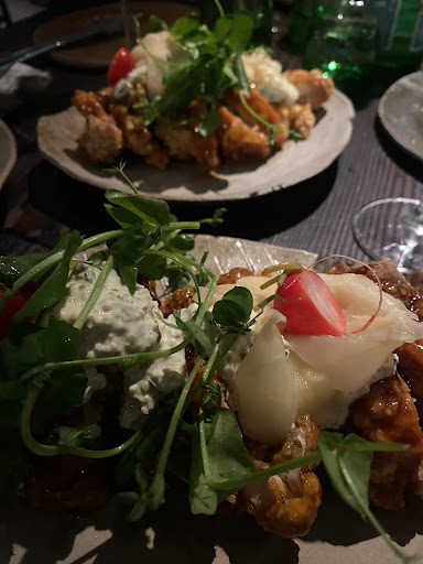 The food is tasty, but the pricing is completely out of touch with the simplicity of the ingredients. For instance, one tiny “taco” made from a plain seaweed sheet, basic rice, and a small portion of chopped eggplant is somehow priced at €10. Honestly, it’s hard to understand how such affordable components could justify such a hefty price tag. The cauliflower dish is another example: €14 for what’s essentially just a small head of cauliflower with a light drizzle of mayo.