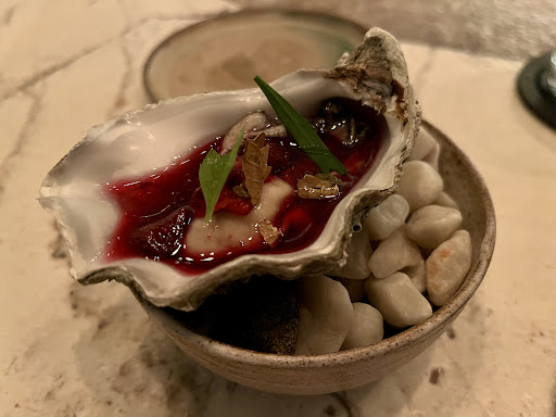 First things first - the food is great, prepared with great attention to details and in front of you. The chef and his team work in the middle of a large rectangular marble bar around which the guests are sitted. What you get to eat and how it’s prepared meet and exceeds the expected value for the price. Cudos to the chef and his team. The atmosphere is not very formal and cosy, which we personally liked. The restaurant is located in a hystorical building with great architecture which certainly gives additional charm. The service, however, doesn’t fully match that level. Without going into details, I’ll point out two big issues. First, you don’t persistently and repeatedly ask the lady with a half full glass if she wants another (charged) glass of wine. Rest assured guys - if we were in a mood to save money on drinks, we wouldn’t have come here :). But, by far the most unusual thing is ASKING for a tip when bringing the bill (before you even have a chance to see the bill, let alone start paying it). This is a big no-no, especially in Belgium where tipping is not common. We were celebrating something as a family and it was the first fine dining experience for our kids, so I didn’t react and tipped ~7%. Yet, in combinations with a number of small setbacks throughout the evening, this did leave a big negative effect on the overall experience. Suggestion: I don’t think that reusing the same utensils for a six to eight course meal is the best practice. I have never seen this in any upper class restaurant I’ve ever visited accross Europe. It appears to be part of the concept, and didn’t really mind, but didn’t really...