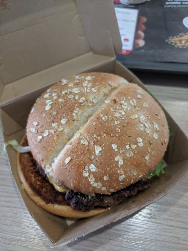 Stopped here in Arlon for lunch and ordered the supreme bacon burger and a small milkshake. And that's what is was: small. And very, very sweet! The burger had a 5 minute wait, which I like because chances are high you'll get a freshly made one that is hot. It did arrive in 5 (well done!) and when I opened the box I was disappointed with the look of the burger. But the taste was a pleasant surprise! It was actually quite a good burger and a descent size. One tip though: easy on the sauce please! And keep your restaurant tidy - it's was quiet and there's no need for...