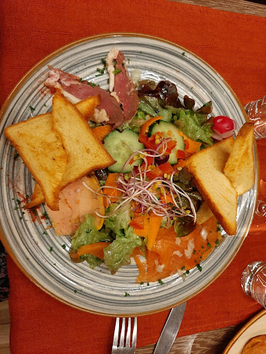 première visite dans ce restaurant le 14/02/23 entièrement satisfaits! Du coup nous décidons d'y retourner ce 25/02 et la vraiment très déçus!! Une des entrées ( salade de chèvre chaud) 3 malheureuses bouchées de chèvre qui se battent dans in brouhahah de salade a peine assaisonnée! Ensuite 1 aile de raie ( a notre avis élevée en aquarium vu la taille de celle-ci ( en plus 24e) 1 filet pur de bœuf (30e) tendre mais sans beaucoup de gout! Et pour couronner le tout en accompagnement pour du poisson( du riz bien sec) et un filet pur de bœuf ( des pommes de terres grenailles, 1 chicon sans gout et des champignons coupes grossièrement). Tellement déçus que nous avons décide de partir sans même prendre un dessert ! Nous avons même remarques que la table derrière nous avait reçu un vol-au-vent accompagne aussi des fameuses pommes de terre grenailles. Franchement niveau accompagnements il faut se remettre en question! On dit souvent jamais deux sans trois mais pour nous il n'y aura pas de 3e fois! Dommage car patron et équipe...
