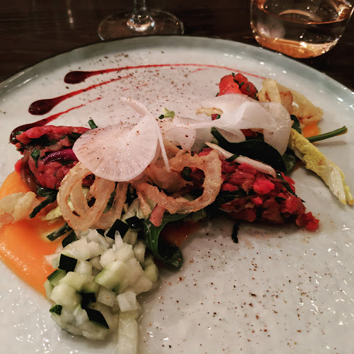 First dinner out after the end of the confinement due to corona. I have to say that they respected all hygiene measures! Place is cosy, service is very good (our waiter was super kind, and he was checking if everything was alright with the right frequency). Dishes are very creative and portions are of good size, not too small. Food quality is good. We had both fish and meat and we were satisfied. Only thing: the tuna tartare, despite being very tasty, was a bit short on tuna. Finally price-wise, we spent 60 eur per person, and we both had a full meal (entree, main, dessert), a glass of wine and a bottle of water.