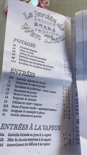 Read moreLe pire repas de ma vie et j'en ai fait des restaurants diffĂ©rents. Quand je lis les commentaires je ne comprends pas, comment peut-on adorer cette "cuisine", donner une fausse illusion aux lecteurs et mettre des 4 et 5 Ă©toiles !? Ces personnes n'ont vraisemblablement ni palais ni autres points de comparaison. Un samedi soir veille de fĂȘte des mĂšres il n'y avait que quelques tables, alors que quasiment tous les restos sont full, ça veut tout dire. Et je le savais, j'ai tentĂ© une ultime fois par dĂ©pit et lĂ le coup de grĂące. Tout est insipide-diluĂ©, rien n'a l'air frais, on a l'impression qu'ils sont dĂ©jĂ venus plusieurs fois Ă table. Le menu : potage eau de vaisselle avec Ă©norme ravioli...on a du mettre un tas de sauce Magie. Dim sum collants sans saveur...encore de la pĂąte Ă gogo. Les rares carottes, sojas et haricots sont crus, la viande (porc ?) se dĂ©sagrĂšge, les scampis et les nouilles sont gras. En revanche : trĂšs gĂ©nĂ©reux avec les tranches d'orange qui accompagnent le "canard", oignon, poivron, champignons Paris conserve, chou blanc cru...plus trĂšs chinois tout ça. Le temps d'attente vraiment trop long, et la totale : un cheveux dans les nouilles et un autre dans le riz. La patronne est plutĂŽt...