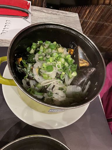 We had a great dinner here. They have a wide menu including dishes for kids. Ordered steak with stragonof sauce and mussels, both were tasty and served with fries. Restaurant is next to the train station so prepare for train crossings which makes this place interesting...