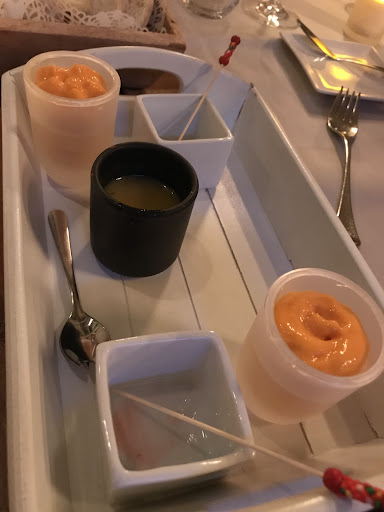 Misschien liggen onze verwachtingen te hoog. Maar het verschil van personen die de menu nemen en mensen die a la carte eten zou niet mogen. Dit in het serveren van de amuse alsook het brood. Als ik a la carte 3 gerechten eet ben ik economisch zeker zo interessant als iemand die een menu besteld (zeker als je maar enkele gerechten serveert). Er wordt geopperd om peperroom te serveren bij de filet puur, bij het serveren is deze niet voorhanden. Wij zijn er last minut bijgenomen. Ook klaagden de gastvrouw over de grote groep mensen die zij heeft aangenomen. Zij mag blij zijn dat de mensen in deze economische recessie nog willen komen eten. Het eten was wel lekker en de complimenten aan de chef. Maar ofwel doe je iets goed ofwel niet. Dus er is nog...