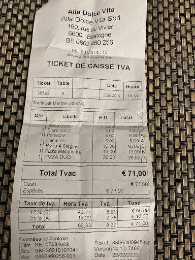 Si vous n'ĂȘtes pas satisfait qu'il ne faut pas aller Ă la Dolce Vita de Bastogne, je vous invite Ă lire les autres commentaires oĂč le gĂ©rant n'a pas hĂ©sitĂ© Ă insulter ses clients. Ce qu'il n'a pas fait avec nous,...