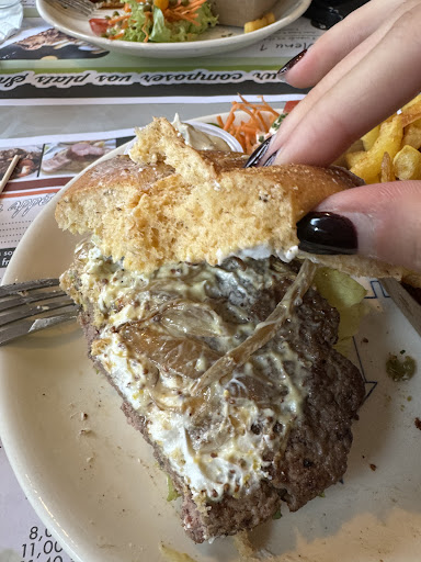 Unbelievable...if ya eat the burger inside it´s 3,50 Euro more than takeaway. I got the baconburger for almost 10 Euro. The waitress forgot to put salad, tomatoe & Chorizo on it as was said in the menue. She had to ask her collegue if I was right, haha. And then the burger was the worst in my life. The french fries were soggy. Jesus...I thought belgian fries are the best in the world? No taste, way to expensive & bad service. Threw away half the food. My friend was disgusted as well. He had a bad cheeseburger. At least the washroom was clean. Today is...
