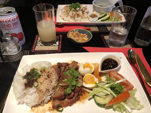Read moreLes plus: délicieux!!! des plats frais et cuisinés maison par une cheffe thaïlandaise (même les enfants - 7 et 9 ans - ont dévoré les nems aux légumes), assiettes présentées avec goût et copieuses, accueil top, salle bien chauffée et... pour les amoureux de la déco, on adore le magnifique papier-peint posé au mur. Les moins: on devra revenir pour goûter tous les autres plats qui avaient l'air délicieux (on a raté le succulent...