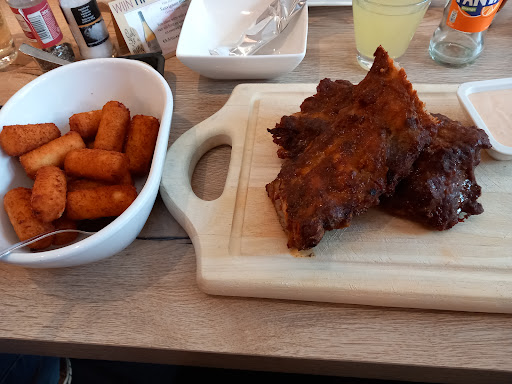 Daarnaast was het eten zelf ook super. Heel lekker en proper geserveerd. Ik zelf had spareribs met kroketen besteld en vroeg of het zonder groentjes kon, zoals op de afbeelding te zien kon dit dus zeker. De ribbetjes en kroketjes waren zeer lekker en ik raad dit ook absoluut aan. De botjes kwamen helaas niet makkelijk van het vlees, maar de smaak maakte dit helemaal goed.