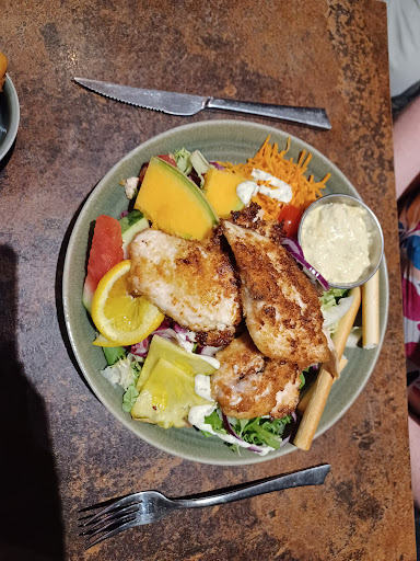 3 assiettes de Catherine, rouget bon mais sauce safran, scampis et saint-jacques trop peu épicée, voir fade et surtout tiède a l’arrivée. Le gratin , les Saint-Jacques scampis et lardons et le steack des Landes étaient bon pour cela rien a dire.