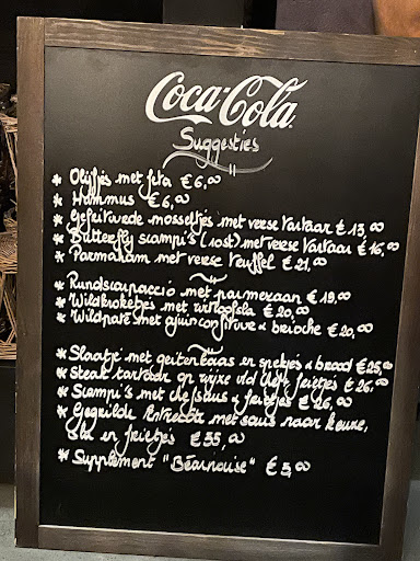Read moreZelden zo teleurgesteld geweestâŠ. Vooreerst de bediening was top, heel vriendelijk en niks op af te keuren, maar⊠Voor de toch wel prijzige rekening, waar ik geen probleem mee heb trouwens, verwacht ik meer kwaliteit. Rundscarpaccio van een zeer bedenkelijke kwaliteit, zonder pijnboompitten, kappertjes, balsamico of andere (olijf)olieâŠ. en daar dan 19⏠voor vragen is echt wel misplaatst (en dat was dan nog van het suggestie menu). Ik had als hoofdgerecht een wild potje, duidelijk een opgewarmd âbord vleesâ met wat krokettenâŠ.. niet slecht maar absoluut niet de kwaliteit die ik verwacht en dan was er de kabeljauwâŠ. Een vis een beetje sla en wat frieten (normaal met puree maar toch enige flexibiliteit đ) de vraag naar warme groenten werd beantwoord met âwij hebben geen warme groenten đł đ nog nooit meegemaakt op restaurant waar je voor een aperitief, voorgerecht en hoofdgerecht een fles wijn en 1 Irish coffee bijna 200⏠neerteltâŠ.een dessert heb ik niet genomen daar het voor- en hoofdgerecht al van bedenkelijke kwaliteit zijn had ik geen grootse verwachtingen en wou niet nog een teleurstelling. Kortom, absoluut zijn prijs niet waardig en wat mij betreft zelfs een afrader enkel al voor de kwaliteit van het eten⊠dan zijn er in de buurt betere zaken (die wel open zijn op zaterdag en zondag). Ben je vegetariĂ«r, dan moet je hier absoluut niet zijn want geen vegetarisch gerecht op de kaart of bij de suggesties (wat in deze tijd zeer raar is want elk restaurant heeft wel minstens één of twee opties) Om toch met een positieve noot af te sluitenâŠ..de bediening krijgt een extra ster want...