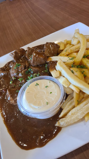 The menu features classic dishes like stoofvlees (one of my favorites). The portions are generous and the prices are reasonable, making it a popular spot among locals and visitors alike.