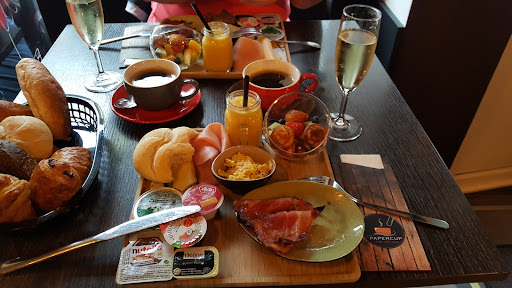 Op aanraden zijn we hier komen ontbijten, eerste en laatste keer... Wij hadden een luxe ontbijt. Dit was erg teleurstellend. We hebben 3 kwartier moeten wachten op ons ontbijt. Toen het eenmaal aankwam hadden we niet eens een bord dus hebben we een serviette moeten openleggen om toch maar te kunnen beginnen aangezien het bord met spek en ei weer 10 min. later pas kwam. Mijn spiegelei was te ver gebakken waardoor mijn dooier helemaal opgedroogd was. Ik raad het hier dus...