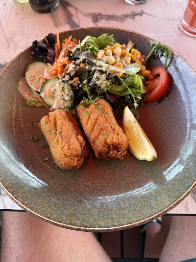 Wir bestellten zur Vorspeise die berühmten Garnelen Kroketten eigentlich wie überall dort auf der Promenade. Diese waren hier zwar etwas teurer aber auch die besten.
