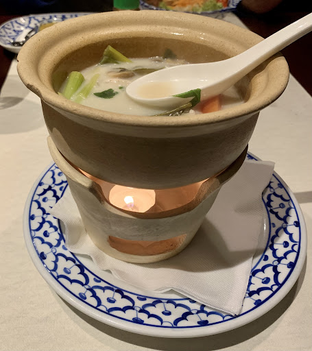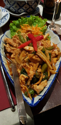 It looked like a nice place. Attentive, friendly service. However the food wasn't good nor real Thai food despite high prices. Flavourless green curry almost without vegetables, just a few bamboo shots. Ground beef dish just spicy without any flavor. Only the frog legs as a starter were passable, although more fatty and oily than crispy as we expected.