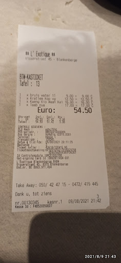 Read moreWir haben am Nachmittag vom Vortag per SMS reserviert und eine schriftliche Bestätigung gebeten. Leider habe ich diese nicht erhalten. Wir kamen am nächsten Tag um Punkt 18 Uhr an (bei der Eröffnung) und wurden von einer Mitarbeiterin/Chefin sehr grob entfangen. Ein Lächeln als Begrüßung wäre wohl zuviel gewesen! Wir hatten gesagt das wir per sms reserviert haben aber leider keine Antwort bekommen haben. Eine Kurze Antwort wie: "sorry, Restaurant ist voll" wäre wohl nicht Zuviel gewesen. Uns wurde mitgeteilt dass das Restaurant schon seit eine Woche komplett sei! Es kam echt so rüber als ob wir blöd sind das wir sowas nicht wissen (in der Nebensaison). Darauf hin haben wir das Restaurant mit kleinem Kind zügig wieder verlassen. Traurig weil es war seit mehr als 15 Jahren unser Lieblingsrestaurant in Blankenberge gewesen wo wir schon öftern waren. Wir sind dann zu einem Chinesen essen gegangen und wurden dort auch viel netter empfangen und haben dort letztendlich einen schönen Abend verbracht. Und unser Geld am richtigen Ort ausgegeben. Auf nie mehr wiedersehen l'Exotique!! Aber bei der Anzahl der Kunden ist das doch egal. Einer mehr...