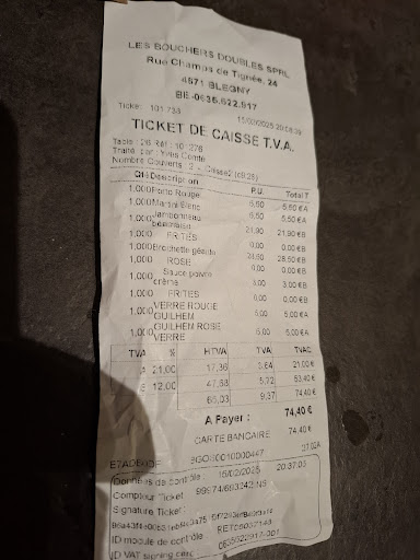 Read moreTrès déçue un serveur asiatique très antipathique Longue attente des plats on ne vient même pas demander si nous voulons des boissons entre temps Alors la brochette géante de 350 gr 4 morceaux qui pour moi n était pas du tout le poids indiqué sur la carte Quelques petits légumes pour les légumes il faut aimer les chicons et les choux de Bruxelles. Notre table pas de salière quand nous demandons du sel ils nous apportent un petit bol avec du gros sel pour des frites Alors que sur les autres tables nous voyons des salières et poivrier la sauce au poivre pour 3 euros très peu pas suffisammentpour les frites et la viande . Mais si vous demandez une sauce froide ils répondent qu ils n en ont pas donc pour avoir un peu de sauce vous êtes obligé de payer 3 euros de plus Franchement très déçue aussi bien du service que de l assiette ça ne vaut absolument pas le prix. Et si vous désirez manger en amoureux on vous place au milieu un week-end end de la Saint Valentin Les tables de 6 avaient plus d intimité Quand j ai fait la remarque pour la brochette géante qui pour moi était vraiment petite pour le prix ( même longueur que dans les friteries) la seule chose que la personne a su me répondre " je vais en parler en cuisine " franchement si le personnel ne remarqué pas qu il y a un soucis ???? Je qualifie ça d arnaque. Est ce parce que c était le week-end de Saint Valentin qui tout à été diminué en quantité ? Sachant qu ils allaient avoir énormément de monde Je précise c est mon avis. A vous de juger Ce qui est certain la prochaine fois j irais en face. C est...