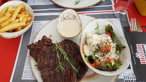 Read morePremière fois dans ce restaurant que notre fils nous avait recommandé pour sa qualité et la possibilité de choisir votre viande. Tâchons ici de rester objectif: Accueil très rapide, les serveurs courent partout. Nous commandons l'apéritif, certains verres sont ternes. Vient le moment de la commande. Rien de plus que ce qu'il n'y a dans le menu. Pour info mon fils est venu la veille et il a été choisir son morceau au comptoir. Bref, vient le moment de déguster nos grillades. Très bien servi, délicieux. La viande impeccable, la sauce un peu limite. Le choix du vin à la sauvette, la encore il faut se dépêcher. Heureusement il était bon. Leur salade magnifique. Ensuite un petit dessert. Simple mais goûteux. Pas de verre du patron, ce n'est pas la politique de la maison. Nous approchions de la fermeture, on a vite compris qu'il était temps d'y aller. Même le patron sillonne les tables sans la moindre expression, je n'ai même pas vu un sourire. Petite surprise sur l'addition mais bon la qualité y était. Nous sommes de la vieille école, nous aimons un ambiance conviviale et où on prend le temps de se connaitre et de s'apprécier. Nous ne cherchons pas juste à manger. Ici nous avons eu l'impression d'être dans un marathon. Je ne pourrais recommander ce restaurant que pour la qualité de ses produits mais comment diable fait on pour choisir sa viande???? (Mon fils me racontera). C'était une expérience intéressante mais je ne reviendrai pas. Pour le prix que j'ai payé, je peux aller ailleurs où la qualité y est aussi bonne et même meilleure et dans une meilleure ambiance. Personne n'a été grossier, ils n'avaient juste...