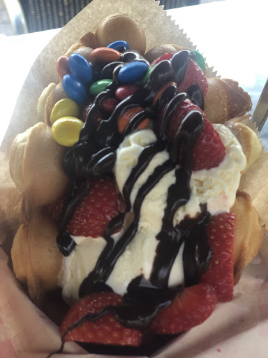 Ons gerecht was ook niet zoals verwacht, wok met scampi wordt geserveerd met gefrituurde scampi. Weer vreemd.