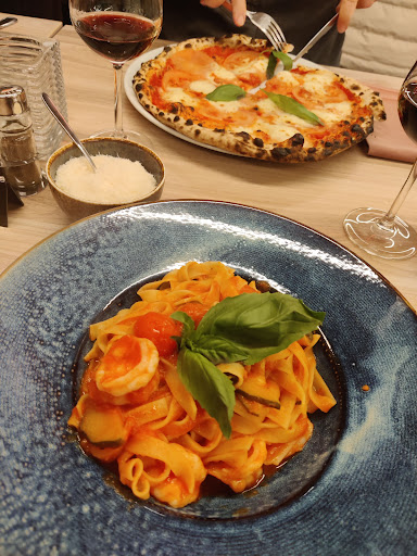 Read moreLast minute gebeld voor een reservatie en daar hebben ze nog een oplossing voor gezocht. We zaten dichtbij de ingang maar dat was zeker ook gezellig. Met kinderen zicht op de pizzaoven was top. Onze twee jongste kinderen(11,7j) hebben een pizza gedeeld,was genoeg. Ik vond het fijn dat dit reeds gedeeld (dus elk een bord) toekwam. Mijn oudste zoon had een pizza met gorgonzola en die smaakte goed af. De pizza's zijn super vers en heerlijk van smaak. Ik had pasta+scampi+courgette genomen. Dit was zo puur van smaak. Niks room maar echt heerlijk van smaak. Ik had geen overvol gevoel nadien en mijn bord was leeg! De desserten waren ook super mooi én lekker. Daarbovenop was het personeel aandachtig voor de klant én heel vriendelijk. Wij komen zeker terug in dit mooie aangeklede restaurant. Tip: zet een tussenschot tussen de eerste tafel en de wachtenden voor ophaling pizza.(misschien in dat mooie hout dat jullie gebruikt hebben)....