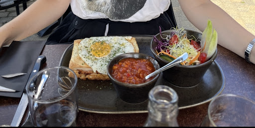 Read moreWij naar deze veelbelovende tearoom waar je ook kan eten. Eerst en vooral is er eigenlijk te weinig plaats, ik zat bvb vlak langs iemand die aan een ander tafeltje zat gesitueerd naar de andere kant toe... Niet echt leuk om privé gesprekken te voeren. Ovenschotel witloof kaas/hesp new style, zag er heel lekker uit...wat betekent new style? Witloof is in stukjes ipv hele kroppen. Geen probleem dacht ik, maar bij het eten moest ik de witloof gaan zoeken! Als er al een half kropje in zat was het al veel. Puree, saus en en hier en daar kleine hespeblokje, niet echt wat je verwacht van een witloof gerecht.... lekker was het wel, maar sorry hoor, soigneer uw cliënteel en het zal terug komen. Ik niet meer, dank u. Het personeel was wel heel vriendelijk,...