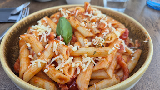 The small menu. No pizza. The restaurant primarily uses three sauces that are repeatedly featured in multiple main dishes, making the meals taste very similar. This lack of variety means it’s far from a culinary experience. Additionally, the food is overly salty—I ended up drinking over a liter of water at home. The eggplant in the parmigianno aubergine wasn’t grilled, making it tough and unpleasant to eat. On top of that, the mint tea was just a tea bag, which felt disappointing. The only redeeming factor is the friendliness of the staff, which earns this place a...