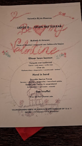 Read moreWij hebben een hele leuke avond gehad in Bij De Moemoe. We zaten op het terras met vier. Onmiddellijk werden we vriendelijk aangesproken en naar onze tafel begeleid. We kregen ook wat uitleg over de gerechten op de kaart, die overigens heel origineel en met de nodige humor staan beschreven. Ik bestelde de steak tartare. Een echte aanrader: super versgemaakt en lekker, fris en mooi gedresseerd. Een leuk detail was dat de kok de steak in verschillende vormen serveert. De frietjes waren zelf gemaakt met zelgemaakte mayonaise gebracht in een schattig afgesloten potje. De porties zijn zeer royaal. Ook de dessertkaart is heel ruim met verse ambachtelijke producten van “bobonne”, de vriendin van Moemoe. Alles klopt in de totaalbeleving van het concept. Het team heeft duidelijk goed nagedacht over het concept en dit tot in de puntjes uitgevoerd. Een echte aanrader en aanwinst voor Bornem en omstreken. Wij komen...