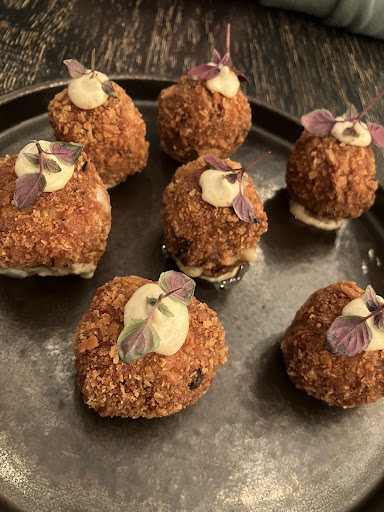 Het eten was verzorgd en lekker, vol au vent kroketjes als voorafje en steak tagliata/ garnaalkroketten als hoofdgerecht. De steak was jammer genoeg in de verkeerde richting aangesneden, waardoor sommige stukken erg taai waren.