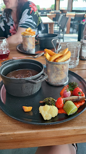 Read moreWhat a find! Arrived at 12 for a coffee and stayed for a brilliant lunch. Great, attentive service from Julian and the 'la potence' for two was delicious, with garlicky potatoes catching the juice of the meats. (Hint) Order rare as the meat continues to cook on the sizzling iron! Setting, decor, toilets all high standard. But it was the food (and beers) that will...