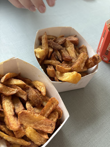 En quelques chiffres : 2 clients devant moi (2x2) 35 min d’attente pour: 5 poulicrocs carbonisés, immangeable. Je les ai jetés! 4 « grandes » frites ( en réalité petites chez la concurrence) 3 sauces 3 pils Le tout pour la modique somme de + de 40 euros🤯 sans ticket.