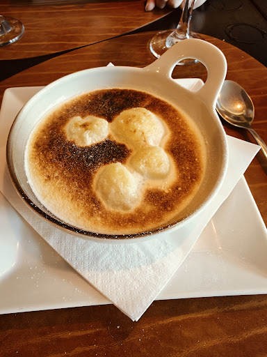 Read moreRead more(J'ai pris le lunch à 21€ (1 seule possibilité pas d'autres choix) car je n'ai pas pu lire la carte (texte tellement petit) et puis j'essaie un plat avant de passer à 45 ou 55€). (De plus, pas de choix pour consommer un simple plat!). La petite verrine/soupe à la courgette avec petite cuillère ne vaux rien: aucun assemblage gustatif. L'entrée: émietté de truite, salade,vinaigrette légère, croûton chaud okTB; Par contre, le plat: c'était du n 'importe quoi pour un resto de cette gamme ou du bas de gamme: Boulettes brûlées des 2 cotés; mélange incertain d'ingrédients: pâte grecque, légume tiède surmonté d'une sorte de crème houmous froide. Ce plat est très mal passé j'ai serré les dents après que l'on m'ait demandé si c'était bon. La salle est moderne, bien décorée. Toilette pas top hygiène. Serveuse hautaine qui demandait à chaque fois si cela est bon = et bien non Je vous suggère si cela vous intéresse vraiment de placer une possibilité de questionnaire et appréciation... Le pire est de manger des aliments brûlés (les croûtons étaient aussi limite brûlé) Bon pain . Cet essai m'a malheureusement condamné à ne plus revenir même pour un menu supérieur en prix. (j'aurais mis 0 étoile pour le plat et l'hygiène un peu juste de...